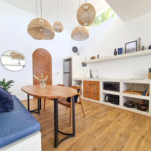 Casa del sol, a lavish 90 sqm apartment, graces one of Bali's most picturesque beaches and renowned surf spots. Featuring 2 bedrooms, 2 bathrooms, a living room, a fully equipped kitchen, and a balcony.