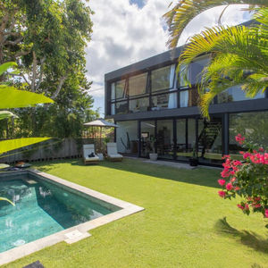 Villa Mola, a contemporary and eco-conscious development finished in February 2020 by our Italian and French designer, creatively repurposes containers for a sustainable design. These villas offer panoramic views of the lush surroundings through floor-to-ceiling windows. Nestled in a tranquil setting, yet just minutes from restaurants, shops, and surf spots.